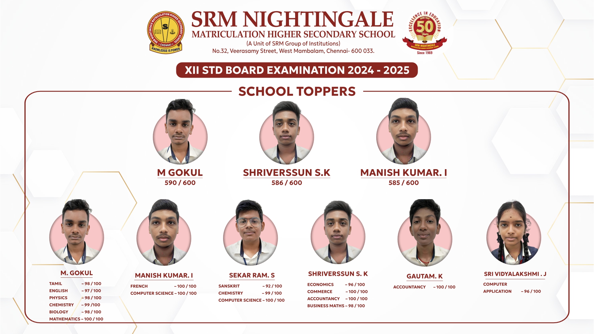 | 2019 | XI | KARTHICK SUBRAMANIAN V | 547/600 |