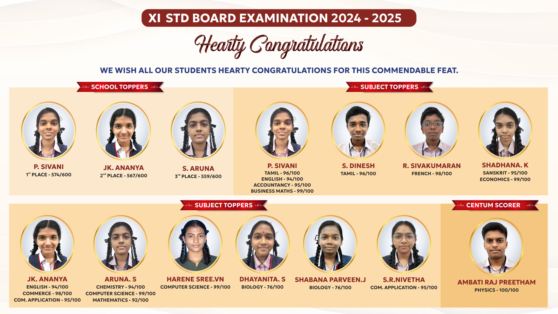| 2021 | XI | NARAYANA VEERA SIMHAN S | 587/600 |