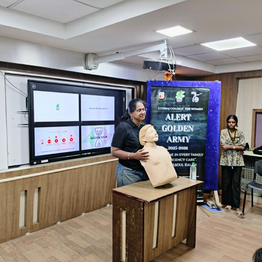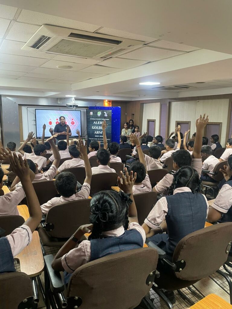 A First Aid Training Session was conducted today (13th October 2025 )for Classes VII, VIII, and IX by Ms. Rekha Sreekumar from the NGO ALERT, in collaboration with Ethiraj College for Women.