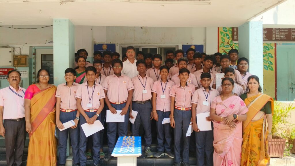 The hall tickets for the forthcoming SSLC Board Examination were distributed to Class X students by the Principal. Students lit lamps and offered prayers seeking blessings for success. The Principal wished them well and encouraged them to stay confident and focused for the exams.