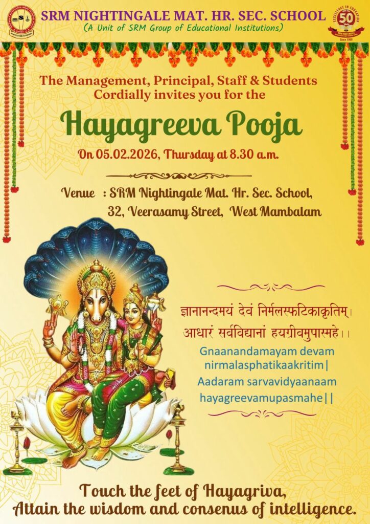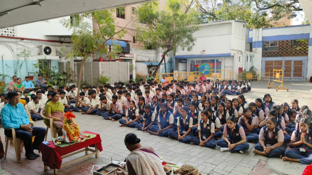 A Hayagrivar Pooja was conducted at school today, with students reciting slokas and seeking divine blessings for wisdom, focus, and success in the upcoming Board Examinations for Classes X, XI, and XII.