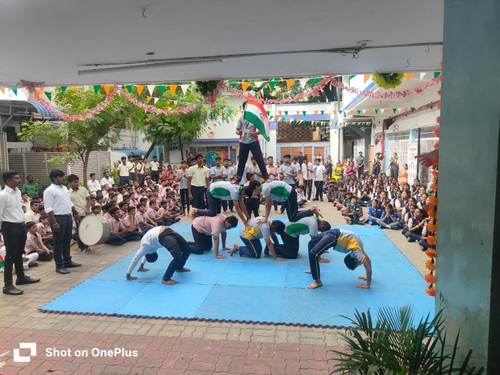 The celebrations began with the flag hoisting, followed by flag song, reverberating with the spirit of unity. The well-curated cultural programme by our talented students showcased their creativity and love for the nation. A spectacular pyramid formation drew loud applause, symbolising teamwork and strength, along with other programmes.