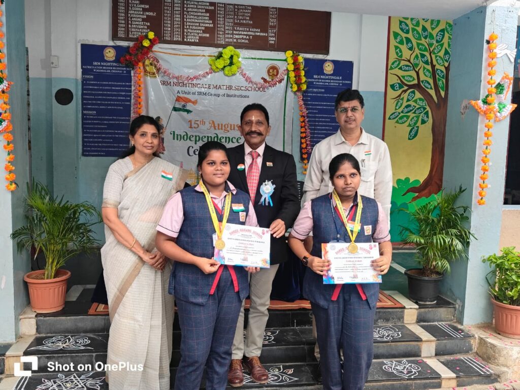 SRM NIGHTINGALE MAT HR School proudly celebrated the 79th Independence Day with patriotic fervour and enthusiasm. The event was graced by our Chief Guest, Major V. V. Narayanan, whose inspiring presence ignited a sense of pride and dedication in every heart. Principal Mr. T. Rangarajan and Vice Principal Ms. Selvi Nandakumar presided over the function, extending their warm wishes to the gathering.