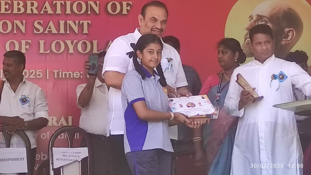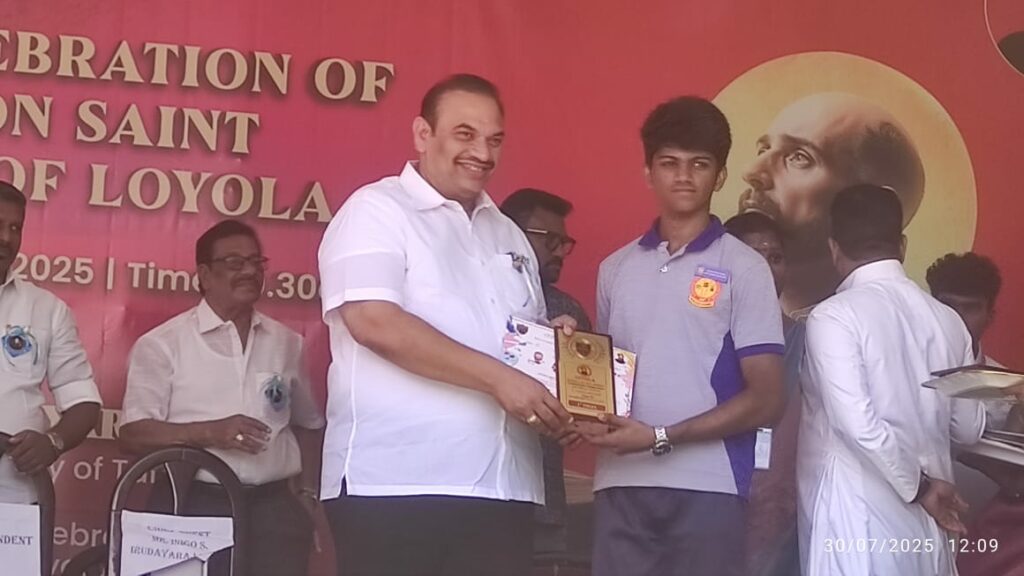 3. Udhaya Mithran of Class XI bagged the First Prize in the Grade XI–XII category, displaying outstanding vision and skill.