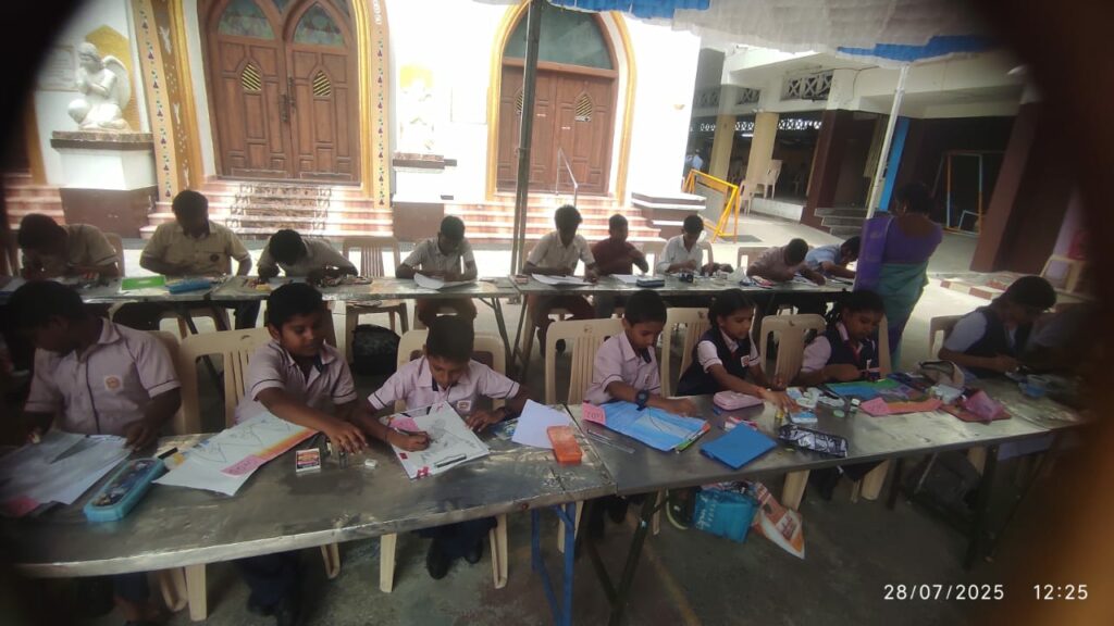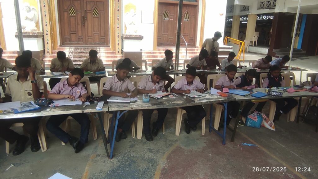 A team of 24 enthusiastic students from our school proudly participated in the Inter-School Painting Competition hosted by Loyola Matriculation School. The event served as a colorful platform for young artists to unleash their creativity through diverse mediums such as pencil shading, crayon art, and bubble painting.