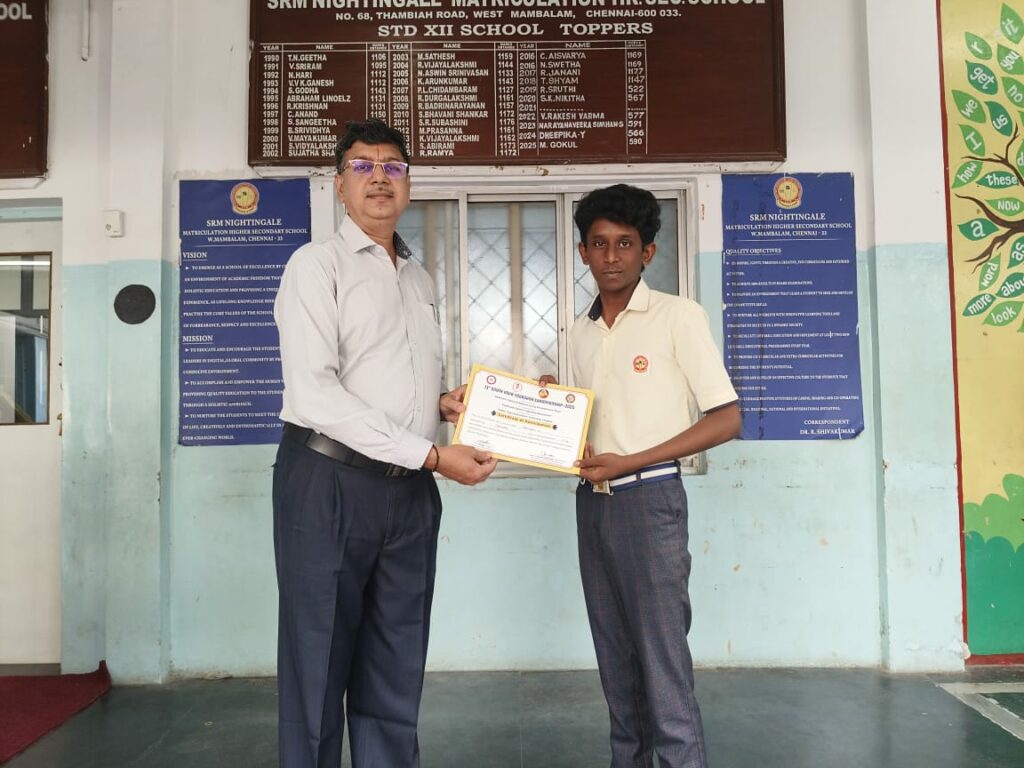• Sakthivel D. of Class XII A – 4th Place