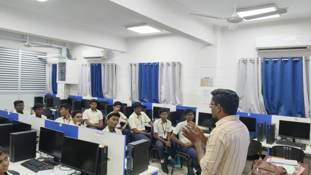 Kalviyum conducted a seminar for Class XII students, introducing their B.Tech CSE program and Boot Camp – Hackathon learning model. The session emphasized hands-on learning, real-world applications, and industry exposure, with students actively engaging and gaining valuable insights.