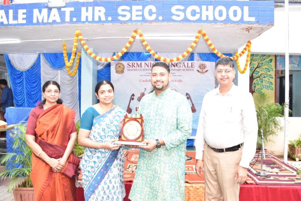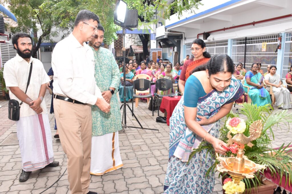 The evening continued with a vibrant concert by Mr. Naveen Vaidyanathan (vocals), Master Pranav (Mridangam), and Mr. T. Sampath Kumar (Violin). The event was graced by Dr. Deiva Sundari, Principal, Easwari Engineering College, making the inauguration a memorable celebration of devotion and classical excellence.