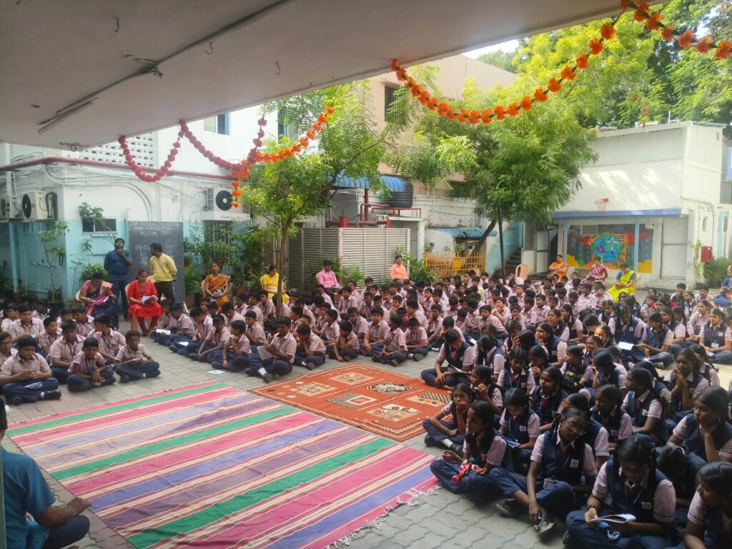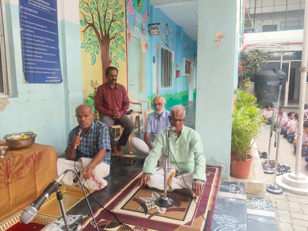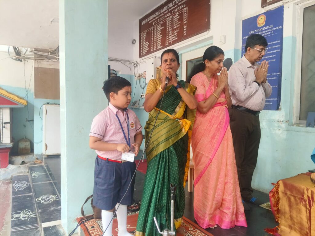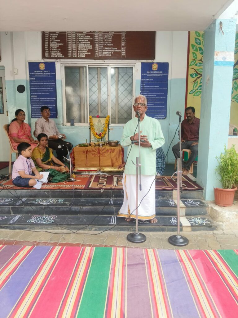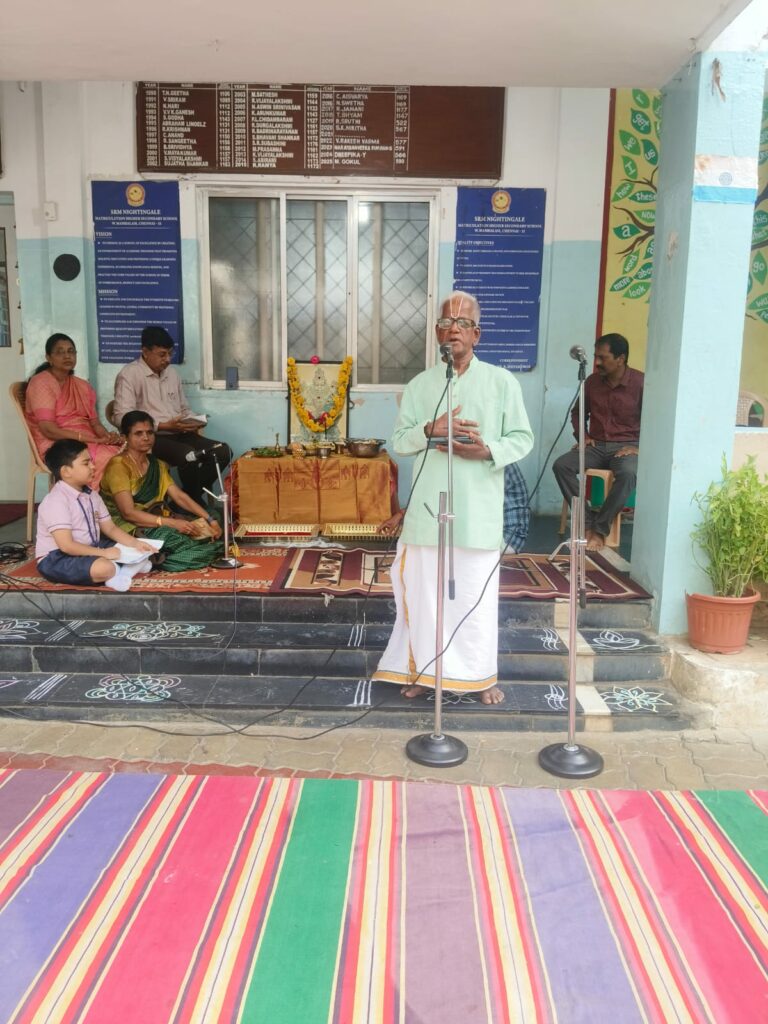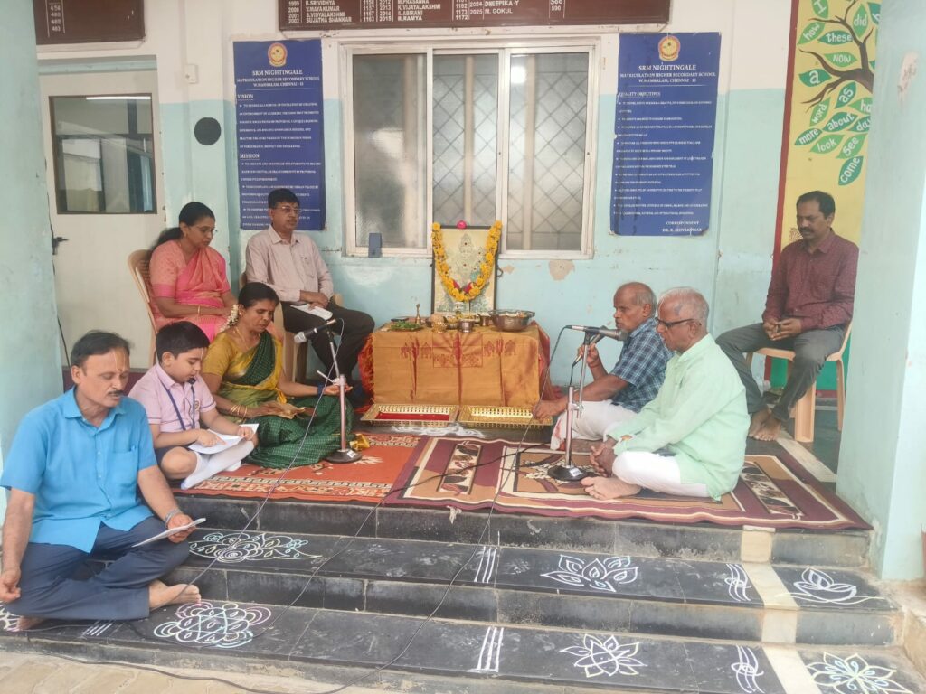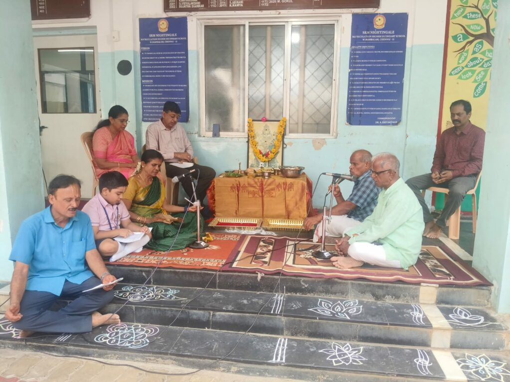 On behalf of Viswas Trust, a soulful session of Vishnu Sahasranamam chanting titled “Mazhalayin Mozhiyil Madhavan Namangal” was conducted in our school premises today from 9:00 a.m. onwards.