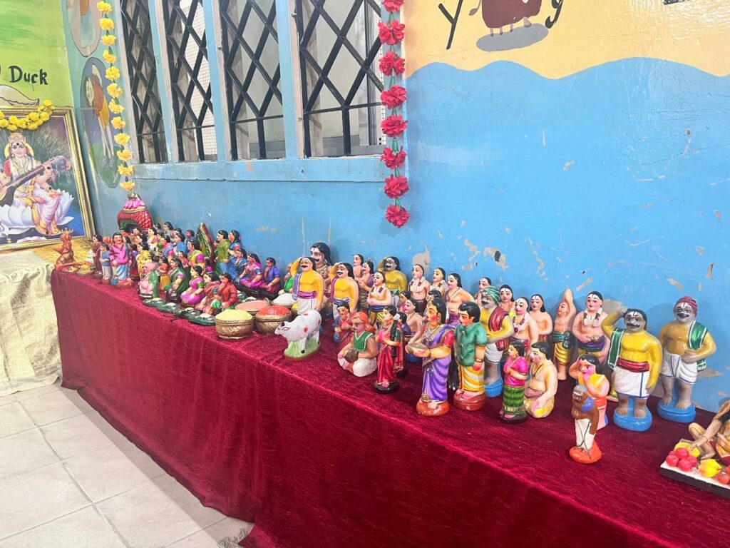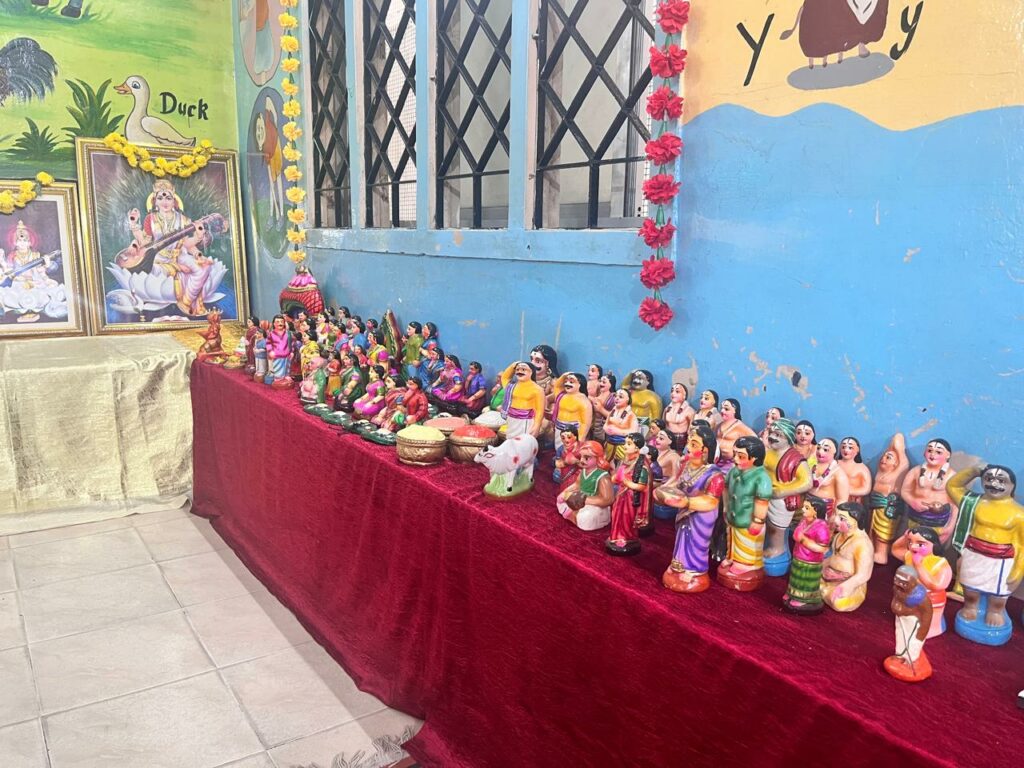 The school is abuzz with Navarathri celebrations, with beautifully arranged dolls and a nine-day pooja observed in an atmosphere of sincere devotion. On Days 1, 2, and 3, teachers took great care in preparing for the rituals, singing hymns, and offering prasadam. The air was filled with divinity and joy, marking a truly spiritual beginning to the festivities.