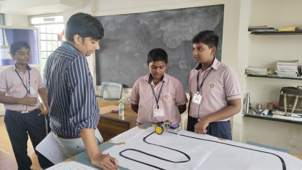 The RoboQuest Intra-School Tech Challenge featured 29 students showcasing projects in circuits, motors, and line-following robotics.