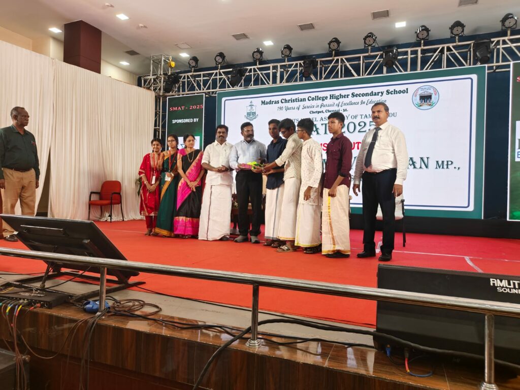 Class IX students attended the second day of SMAT ’25 at Madras Christian College, Chetpet. The event was graced by Chief Guest Dr. Thol. Thirumavalavan, MP, and Guest of Honour Thiru I. Paranthaman, MLA. Mirdhula G. of Class IX-A presented a persuasive bill on “Installation of Solar Panels in Every House in Tamil Nadu by 2032”. The event concluded with students receiving awards and the school being honoured for its exemplary participation.